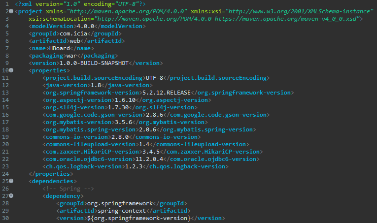 공부중인 MVC프로젝트의 pom.xml 일부분이다.